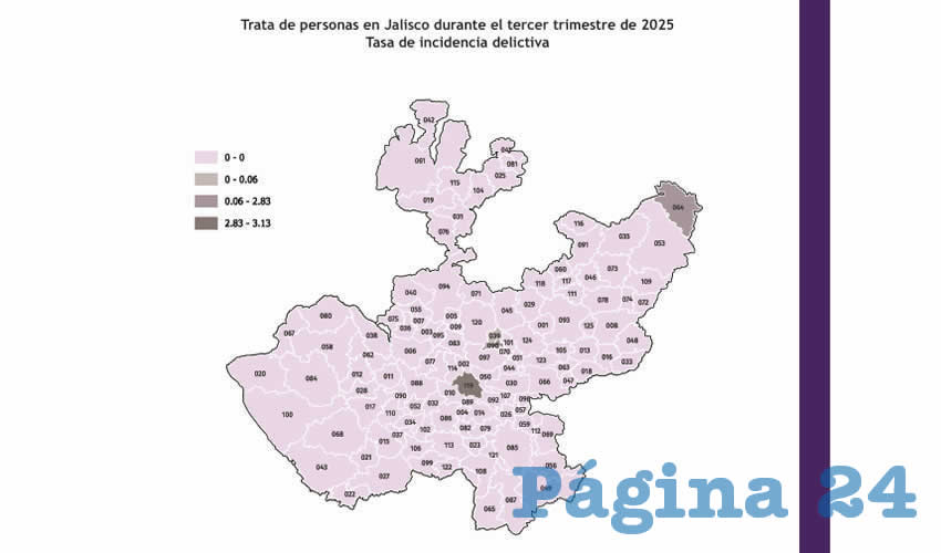 La trata de personas pasó de tres a cuatro carpetas de investigación, siendo los municipios de Guadalajara, San Pedro Tlaquepaque, Ojuelos y Zacoalco de Torres, en donde se presentaron dichos delitos.